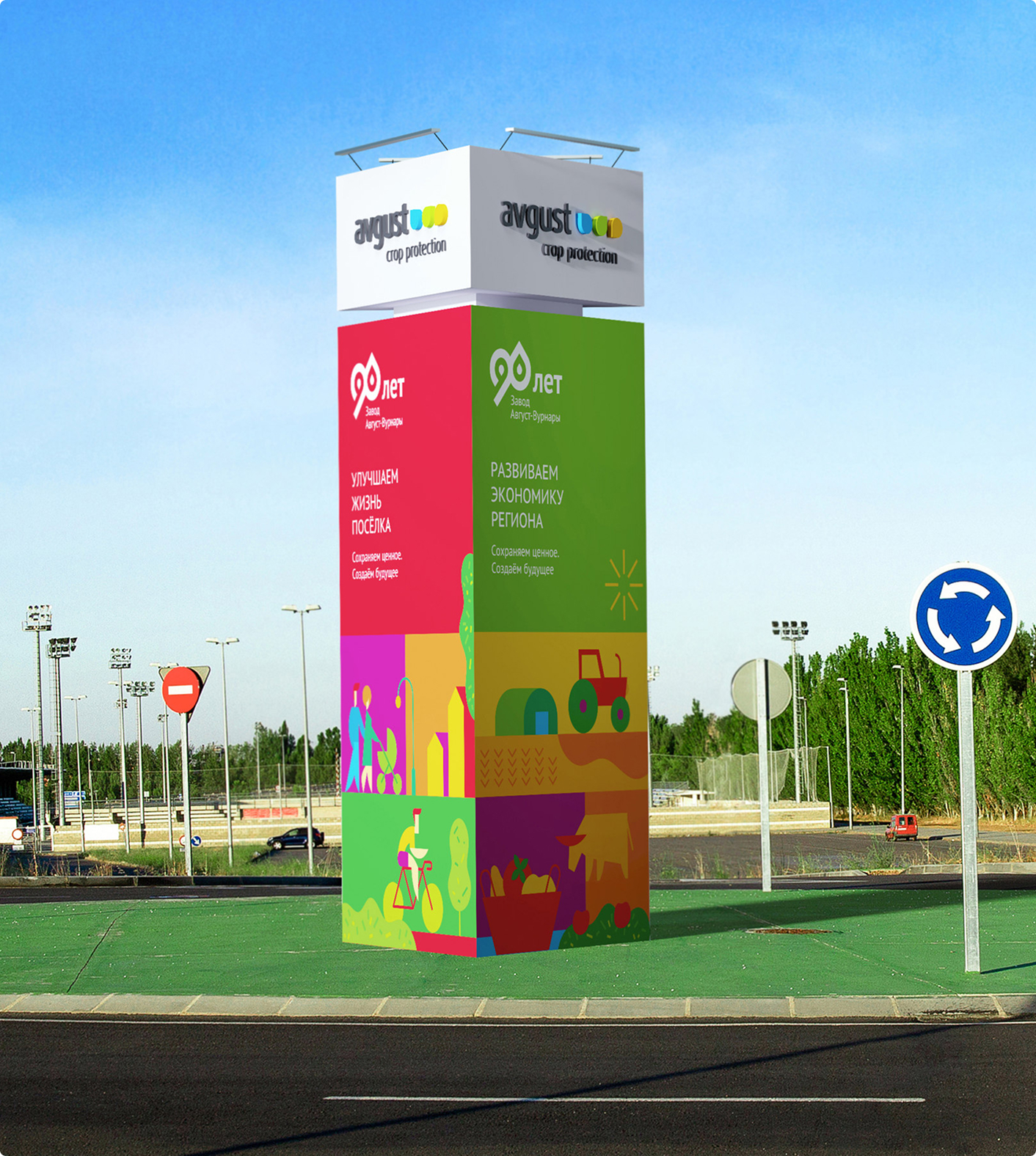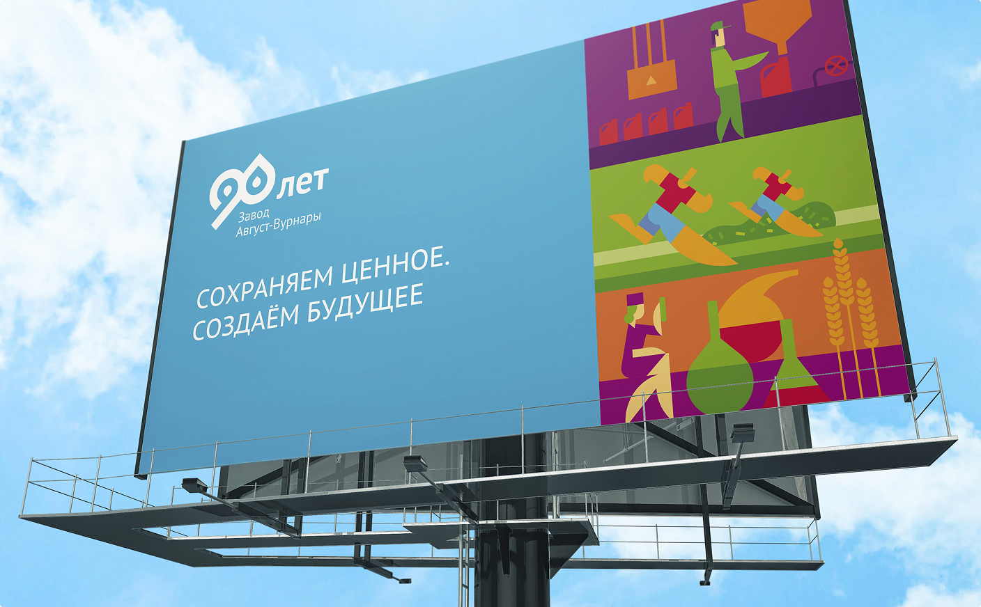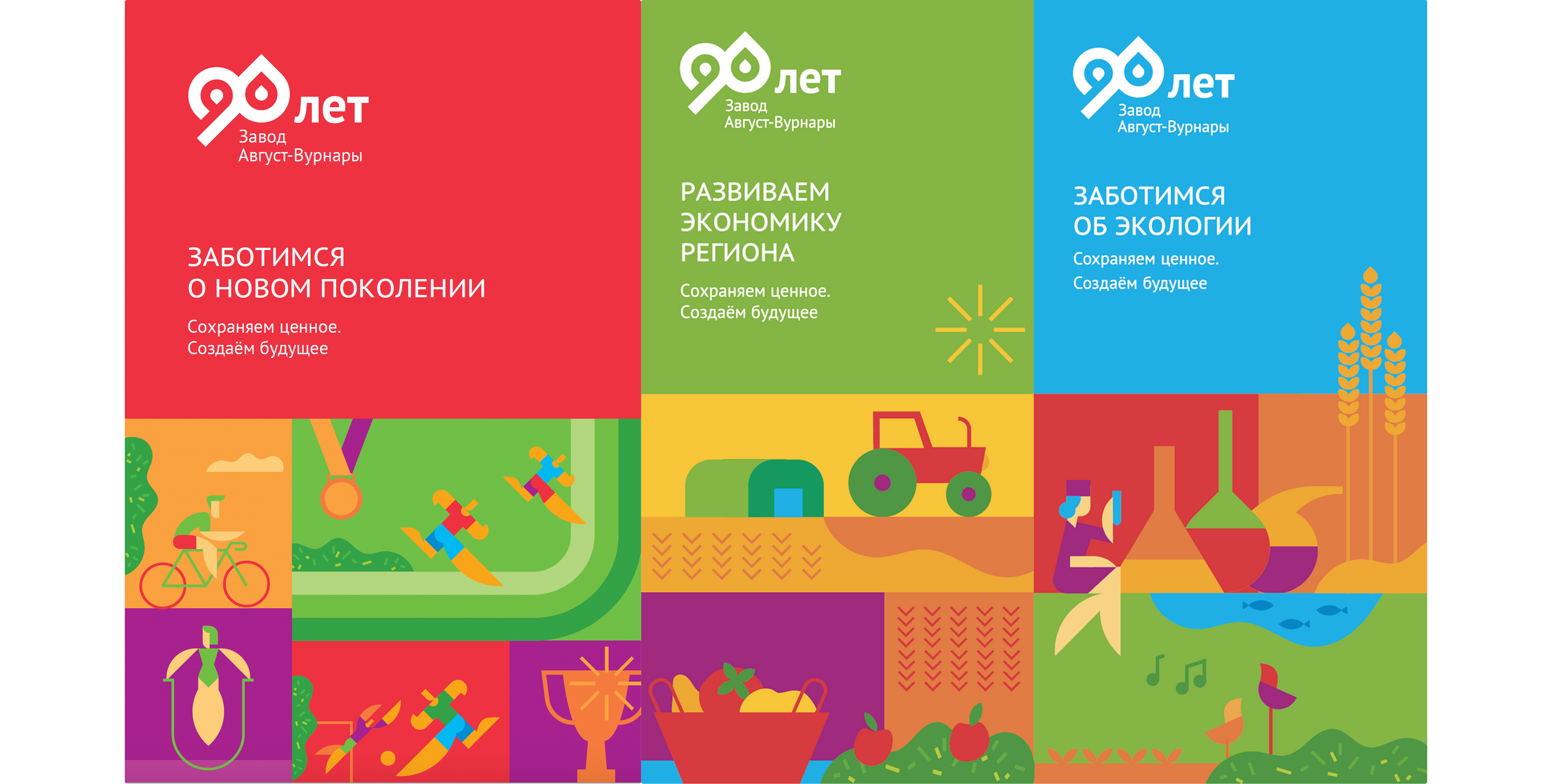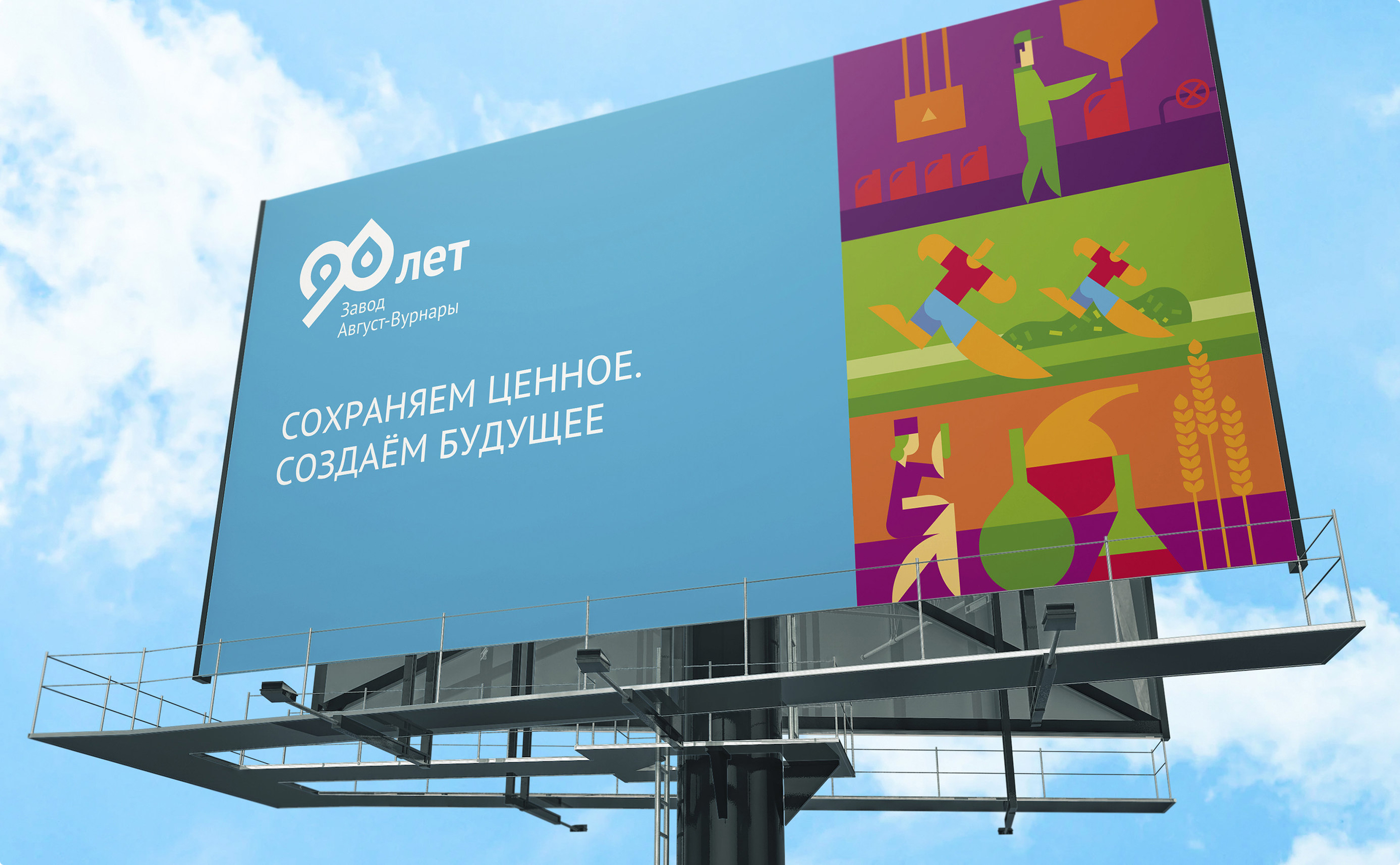 В рамках проекта мы сделали фирменный стиль, генеральный слоган кампании, серию хедлайнов для отражения ценностей бренда, креативную визуальную концепцию, дизайн рекламоносителей, в том числе дизайн праздничных пространственных объектов в поселке Вурнары и на территории, прилегающей к заводу.