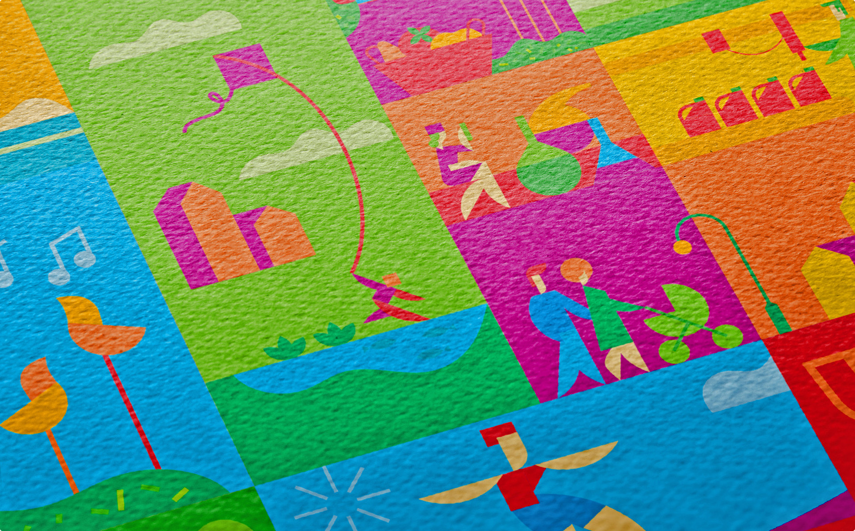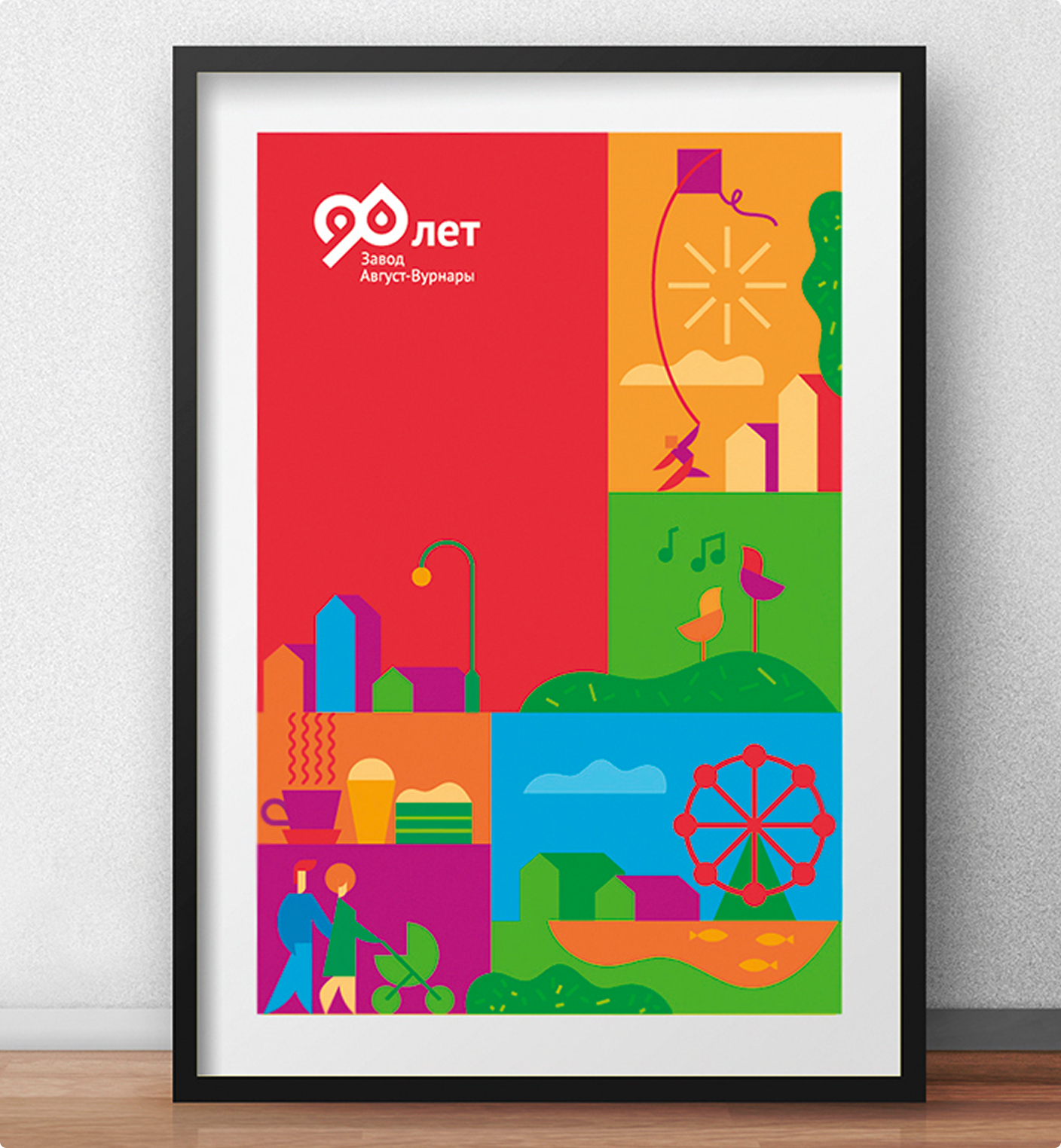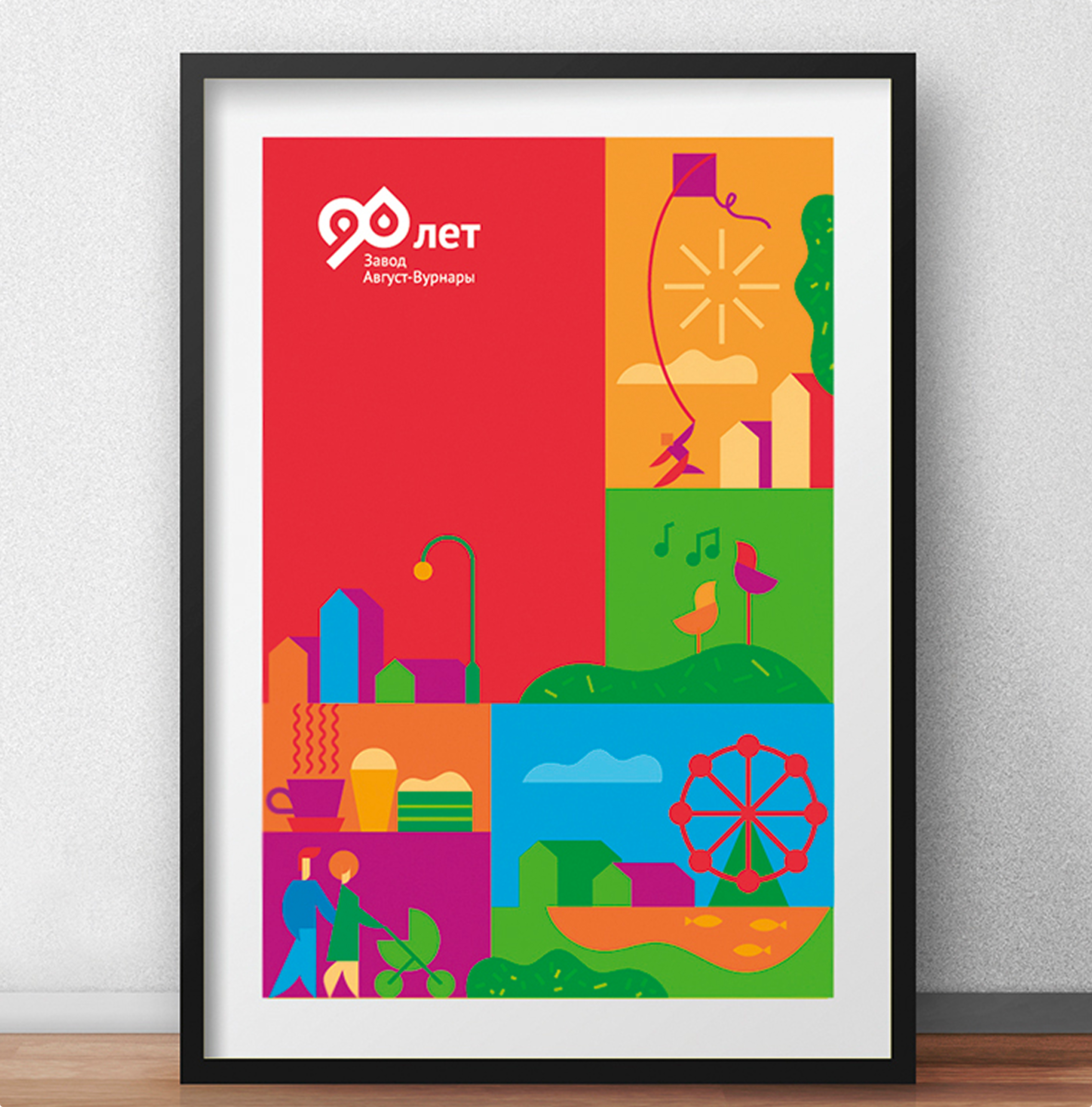 Иллюстрации, которые мы разработали специально для этого проекта, передают атмосферу праздника, формируют неповторимый и неформальный стиль рекламоносителей. Сюжеты иллюстраций поддерживают сообщения в хедлайнах. А фирменные цвета и юбилейный логотип отсылают к визуальному образу бренда компании.