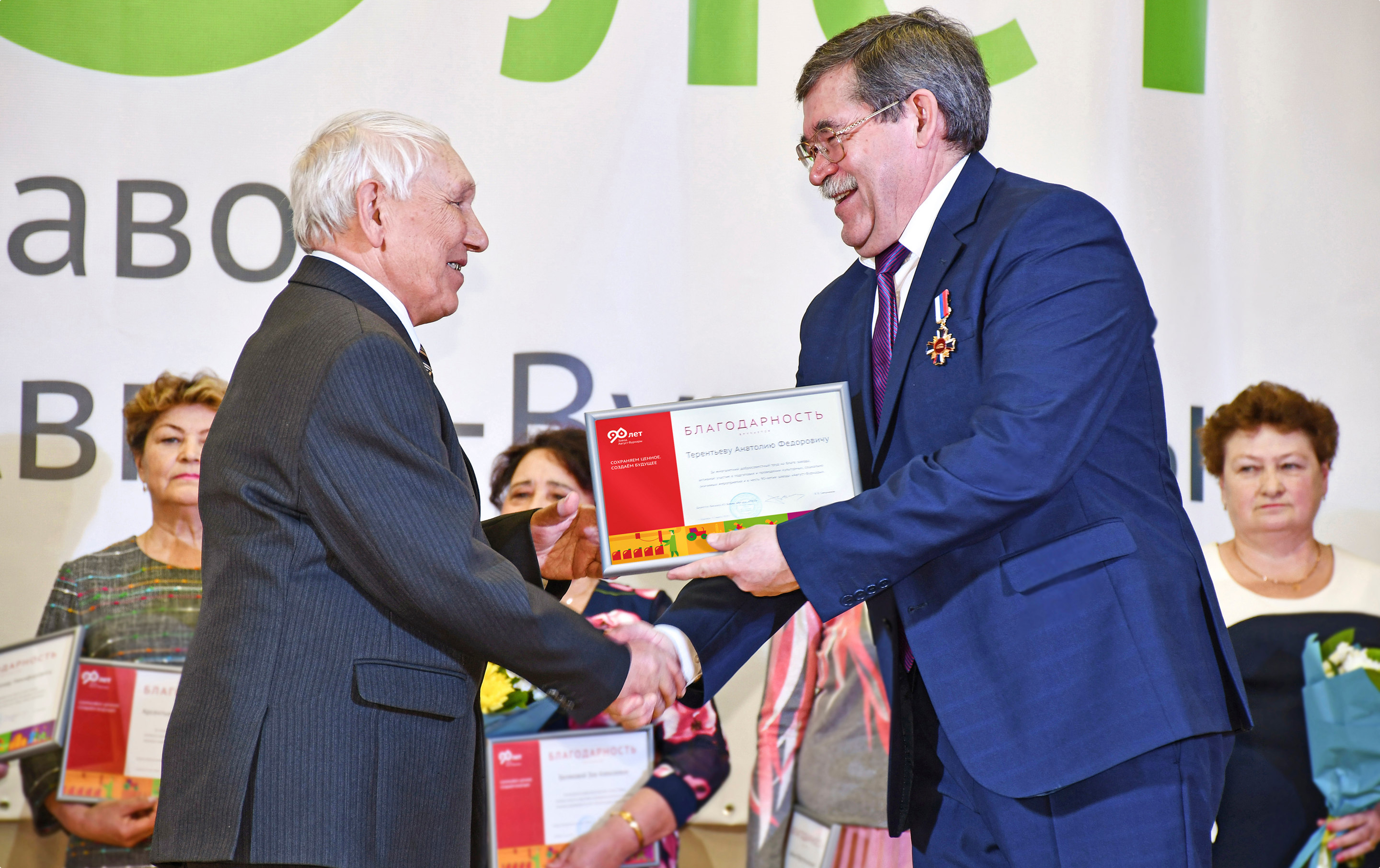 Слоган «Сохраняем ценное. Создаем будущее» обращается к заводчанам, членам их семей и жителям поселка. Он говорит о том ценном, что значимо для нашей целевой аудитории и бережно сохраняется благодаря развивающемуся производству и адресным социальным программам.