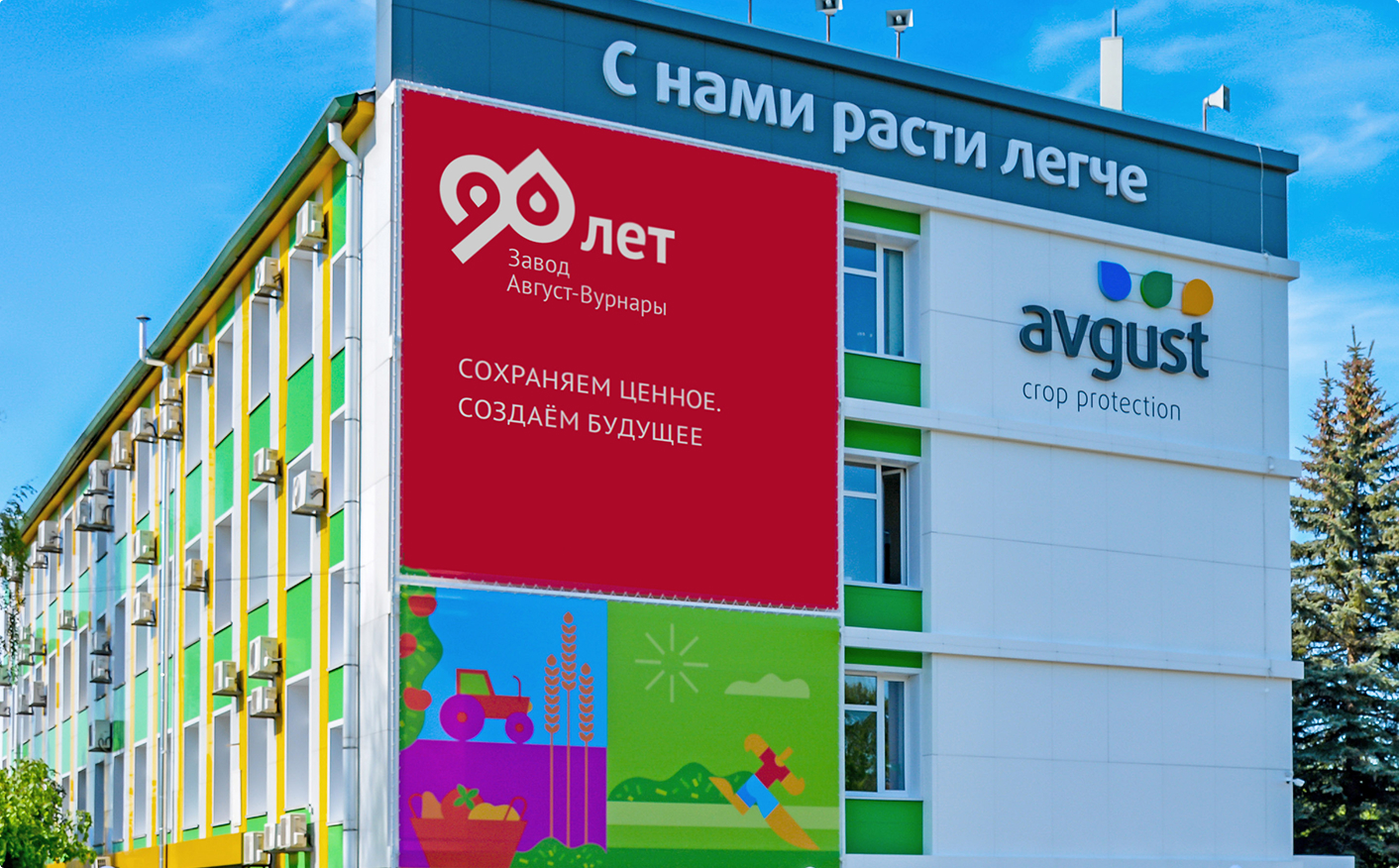 Мы стремились уйти от образа «корпоративной коммуникации» при обращении к обычным людям от лица бренда международной компании. Нужно было найти решение, которое сохранит приемственность визуальному стилю бренда Avgust crop protection, но вместе с тем «сократит дистанцию» и создаст праздничную коммуникацию.