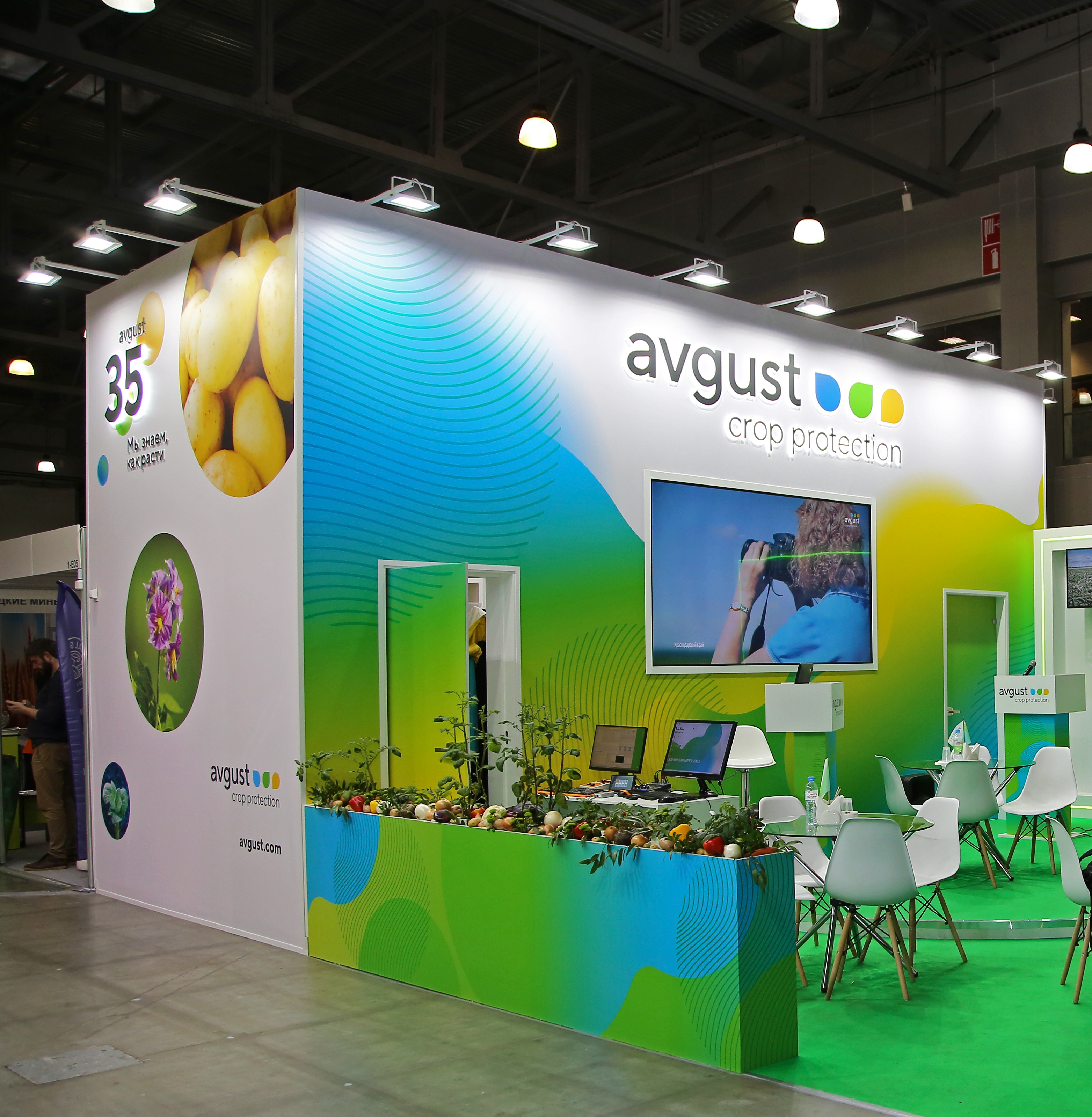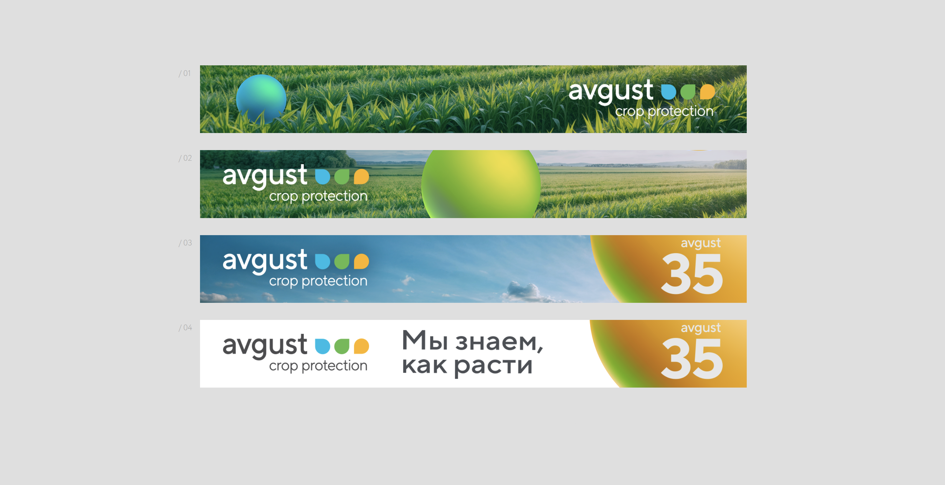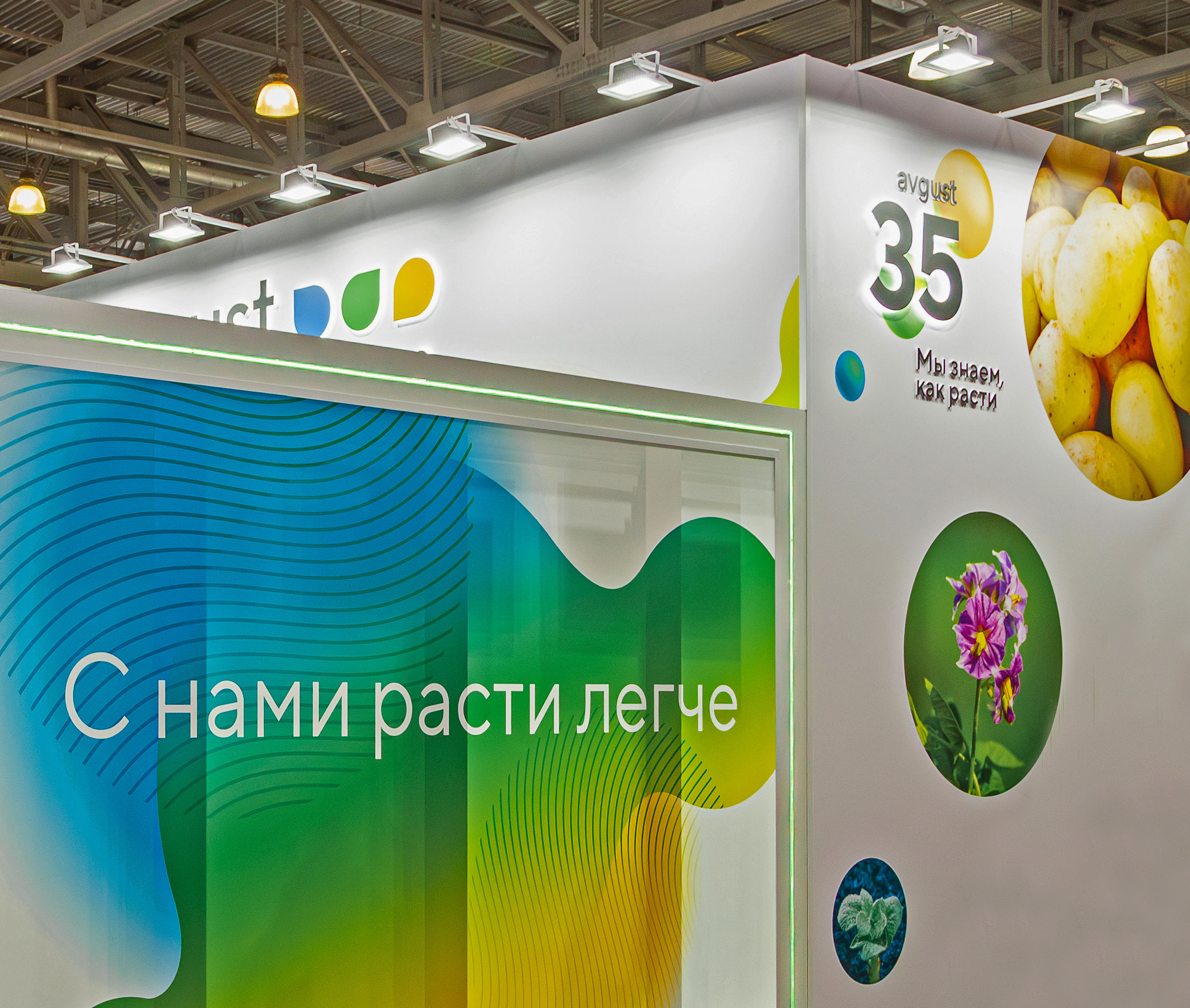 Поэтому была произведена адаптация юбилейной айдентики к продуктовым макетам в прессу для разных форматов СМИ. А так как в юбилейный год проходит несколько сельскохозяйственных выставок, то были разработаны принципы оформления выставочных стендов, с учетом тематики мероприятий.