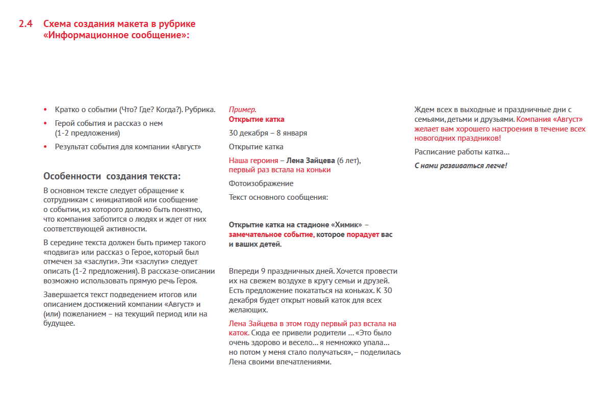 Помимо регламентов написания сообщений для «утилитарных» макетов рассылок, таких как: праздники, дни рождения, новости представительств и отделов, мы разработали единую систему создания текстов в концепции «Герой Августа». Идея концепции такова, что в каждом событии мы стараемся найти «героя-сотрудника» для создания инфоповода.