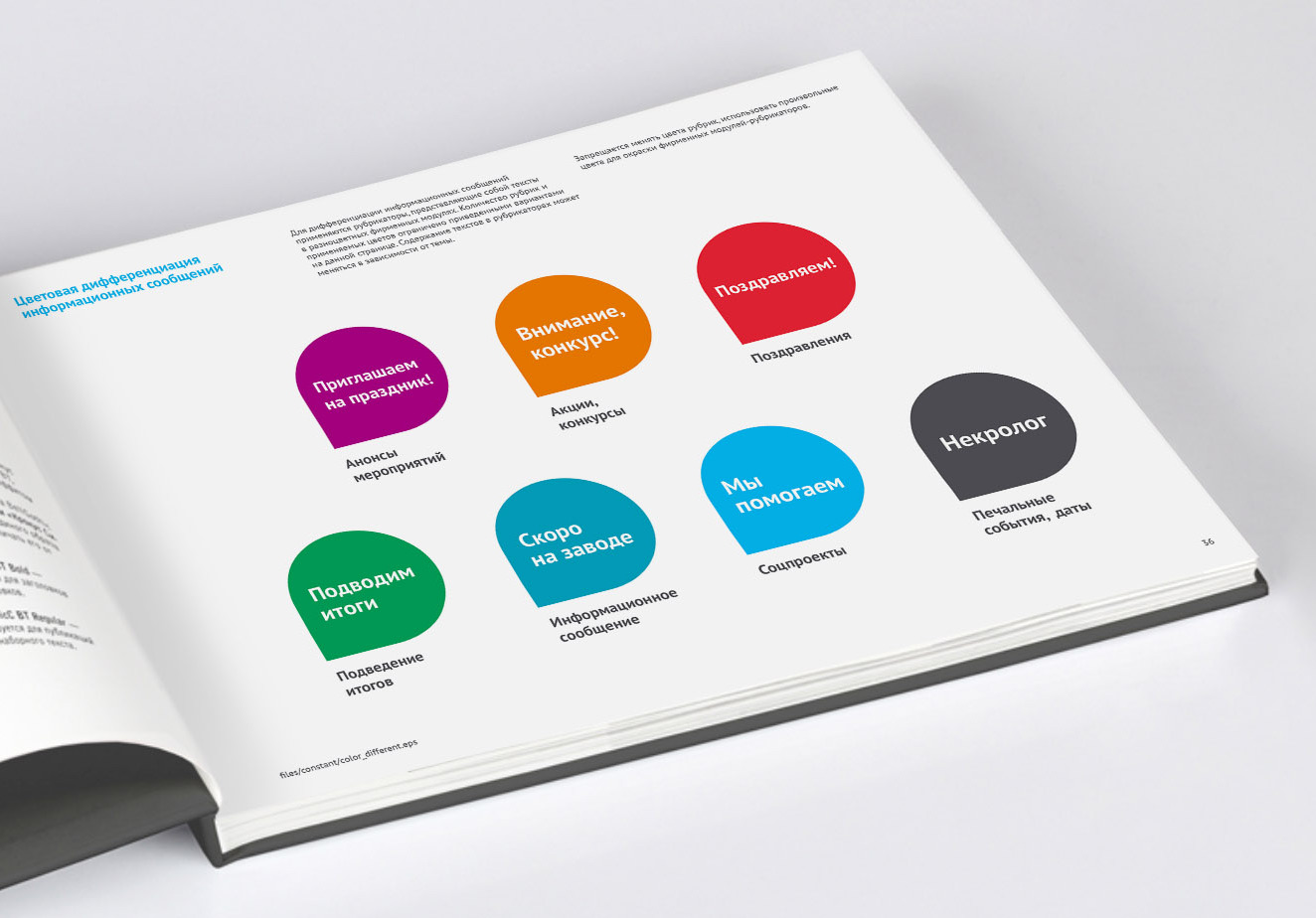 В качестве «обязательной программы» была разработана визуальная система создания рекламных носителей по большому перечню блоков, в том числе: оформление внутрикопоративных мероприятий, изданий, событий, рассылок , а также коммуникации в интранет и соцсетях. В результате проекта был в том числе осуществлен перезапуск внутрикорпоративной газеты.