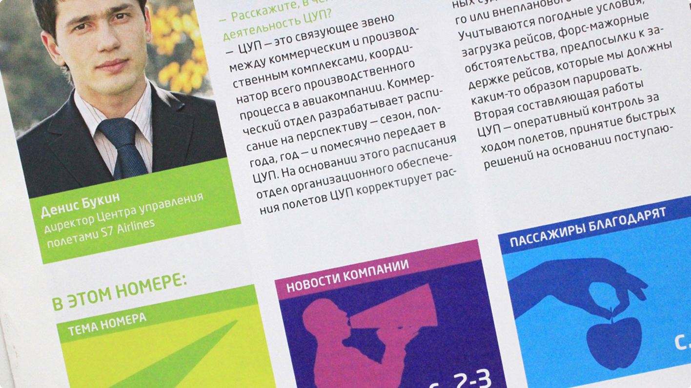 Мы создали название «Горизонты S7», логотип и дизайн обновленной газеты для персонала, которая заменила существующее ранее издание «Крылья Сибири». Для успешного перезапуска газеты мы собрали руководство по подбору материалов и верстке нового внутрикорпоративного издания. В течение этапа перезапуска мы создавали дизайн ключевых материалов издания, а также иллюстрации для того, чтобы верно донести образ и ценности бренда S7 до сотрудников.