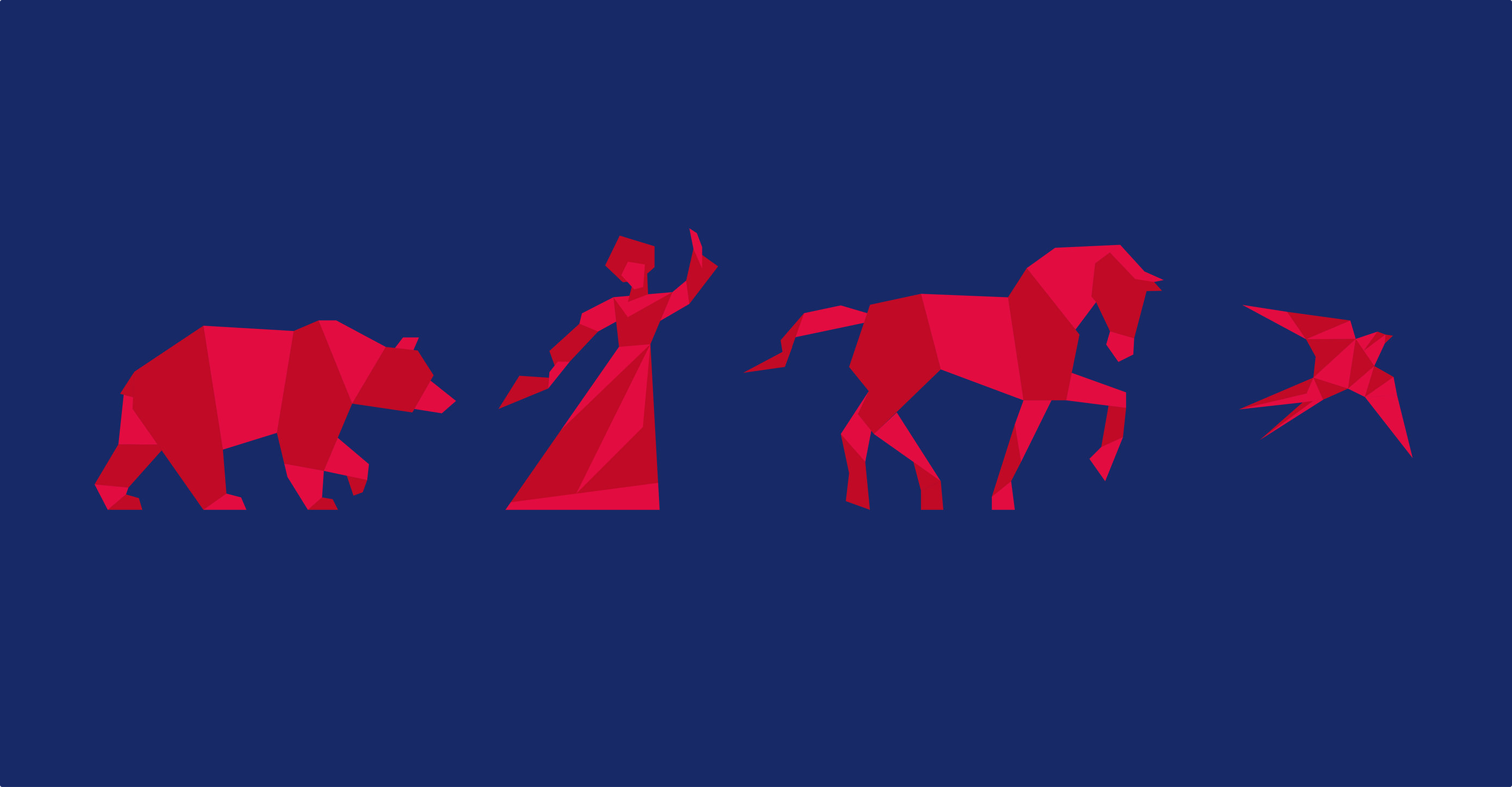 Национальные традиционные символы представляют современную Россию: образы гостеприимства и сервиса (Василиса премудрая), силы и рессурсов (Медведь), быстроты, возможностей и инфраструктуры (Конек-горбунок, Конь-огонь), технологичности и мгновенности реакции на изменения среды (Ласточка, Стриж).