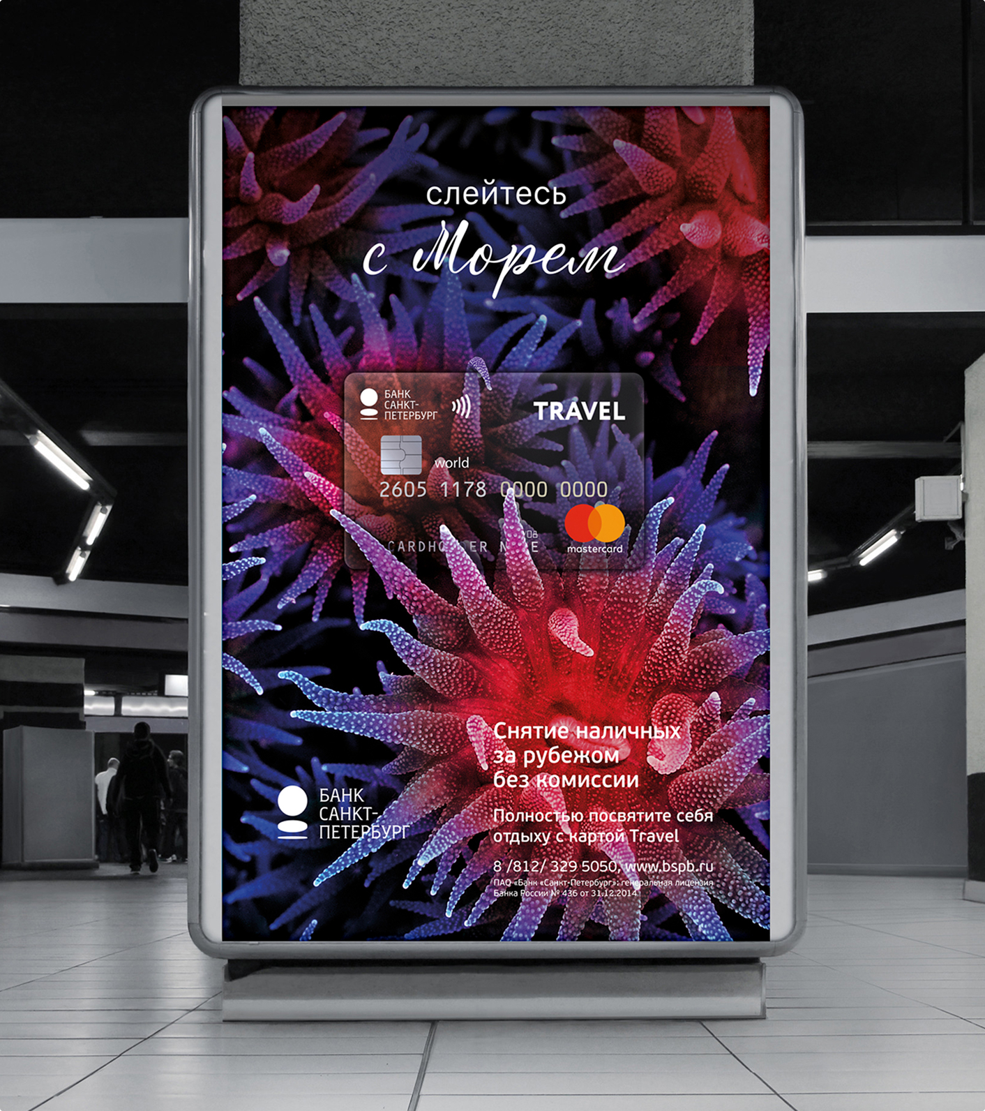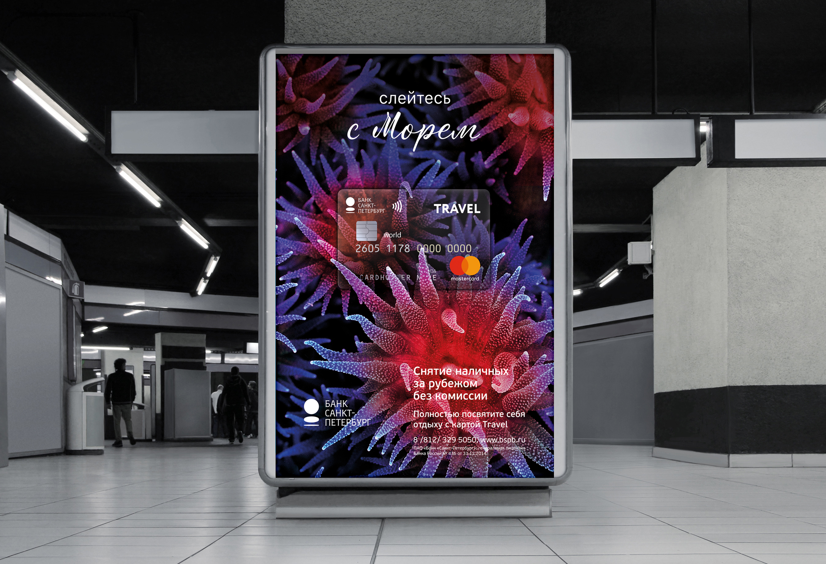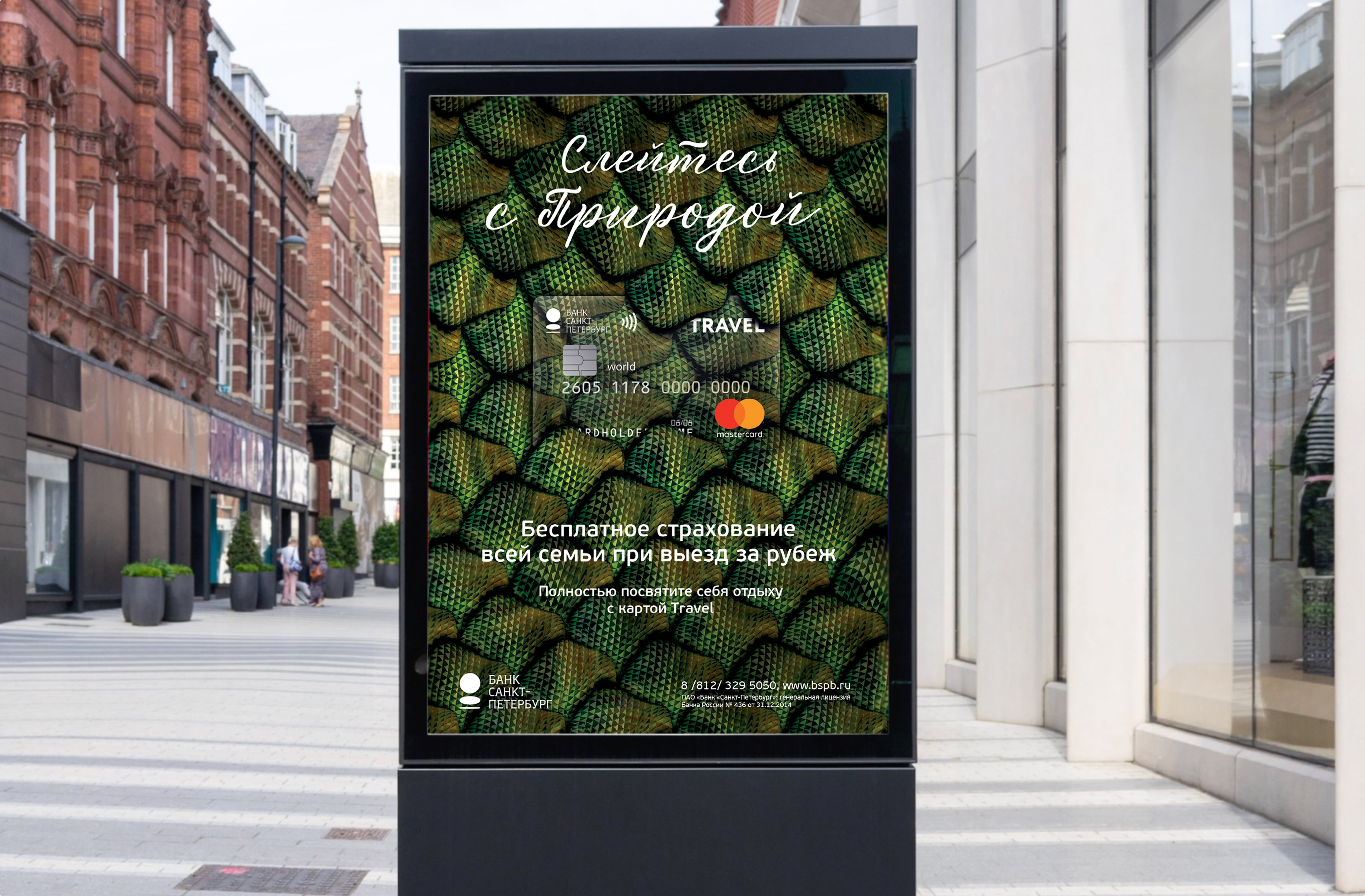 Поэтому карты Travel от Банка «Санкт-Петербург» дают возможность c головой окунуться в отдых. Слоган «Слейтесь с отдыхом» является открытой конструкцией, которая предполагает серию сообщений, представляющих мотивы путешественников и виды отдыха. В каждом сообщении мы представили какое-либо преимущество продукта, подкрепляющее рациональный выбор клиента-пользователя карты.