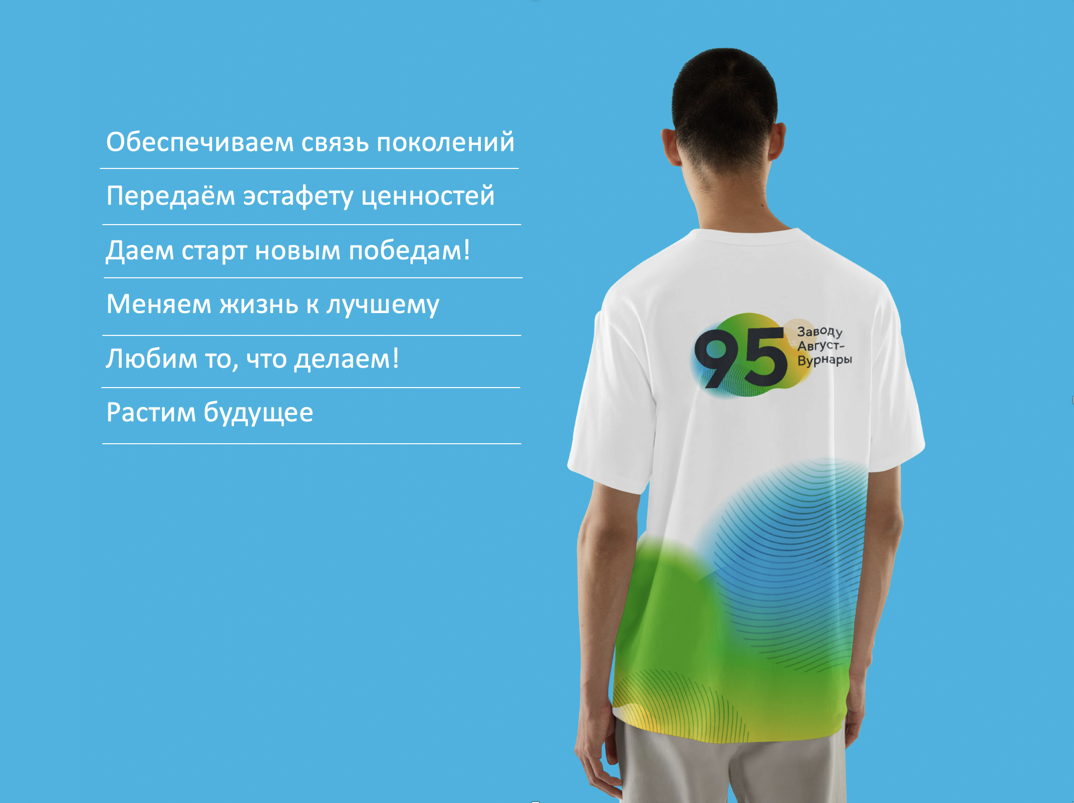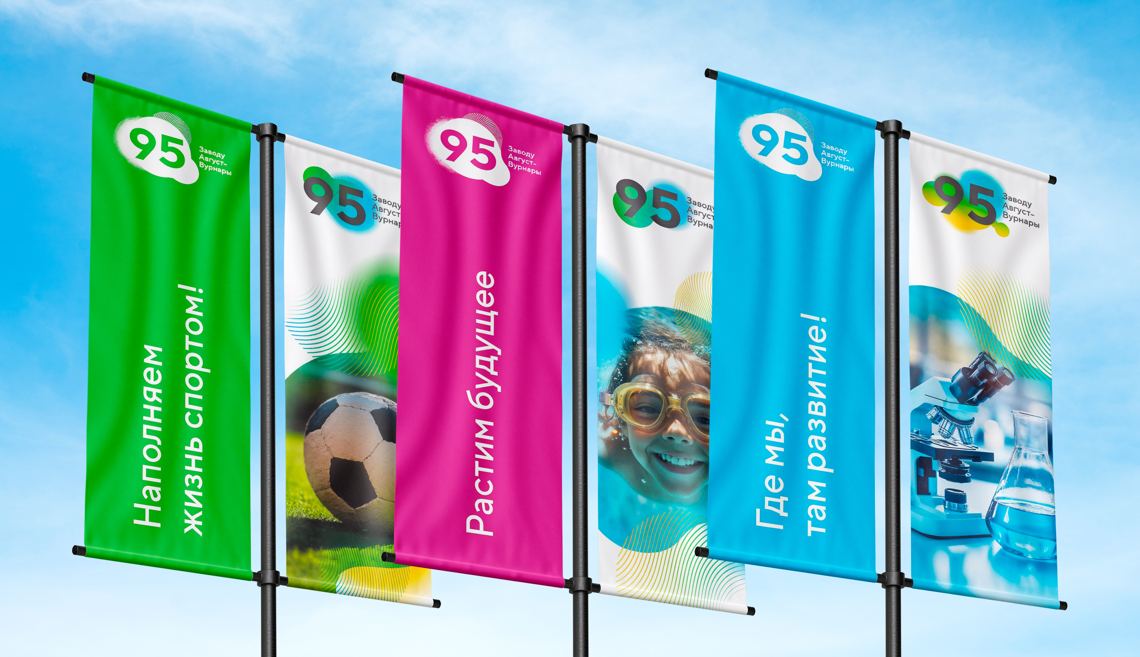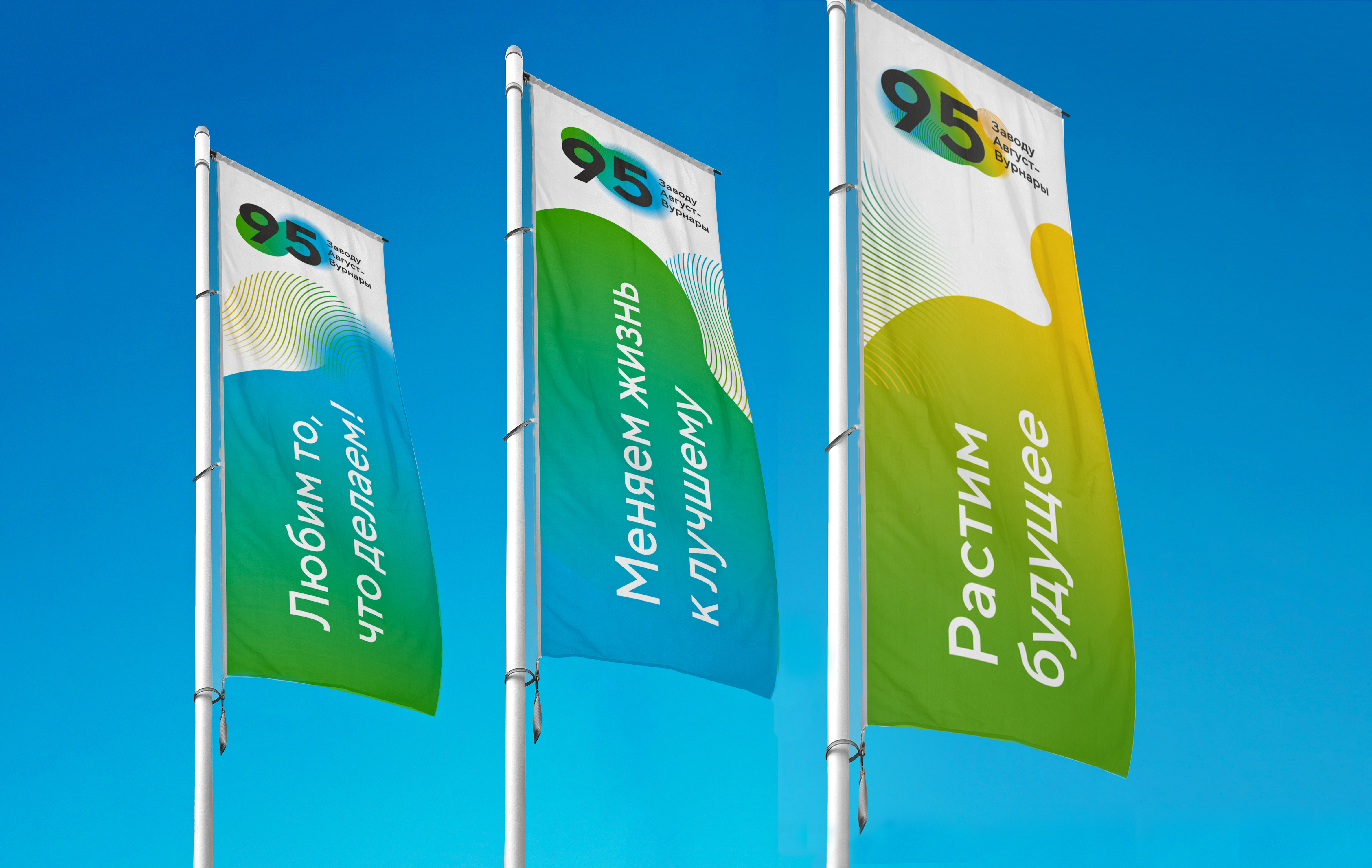 Мы сделали динамичный фирменный стиль – с вариативностью изображений юбилейного знака «95 лет» и стилеобразующими элементами, которые отражают инновационность и технологичность производства.