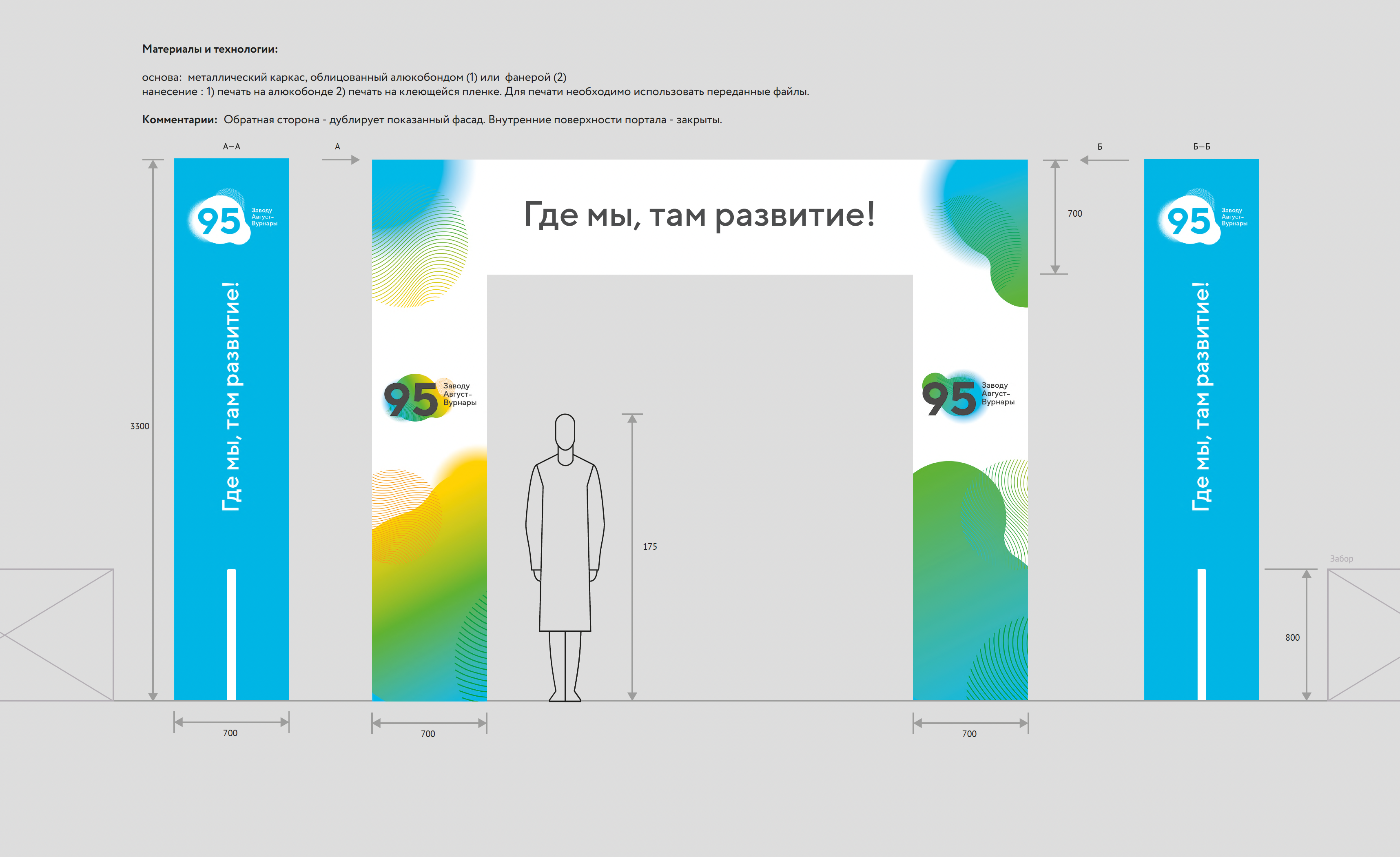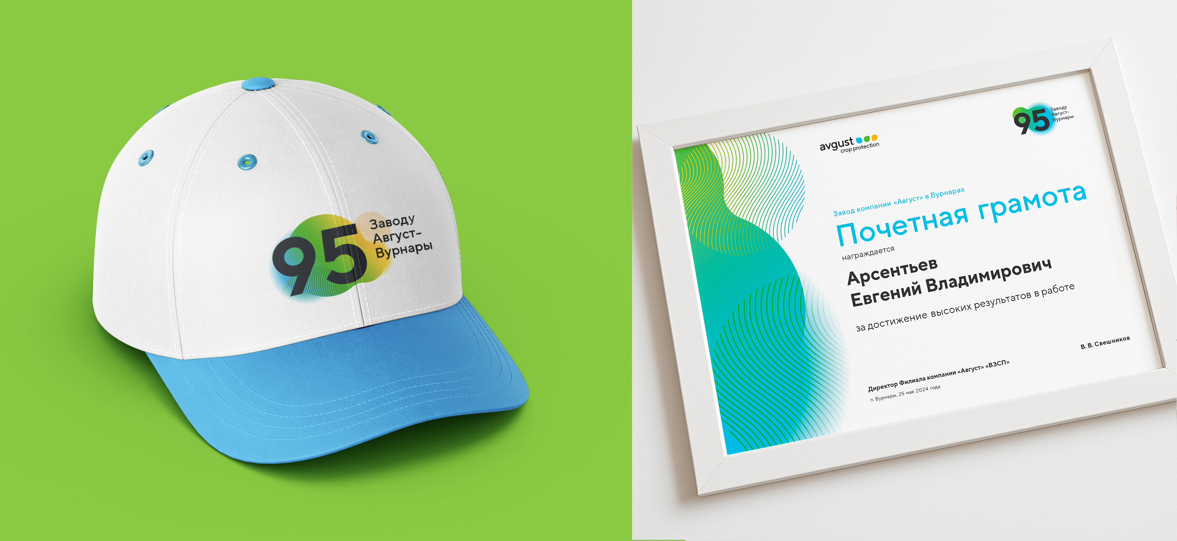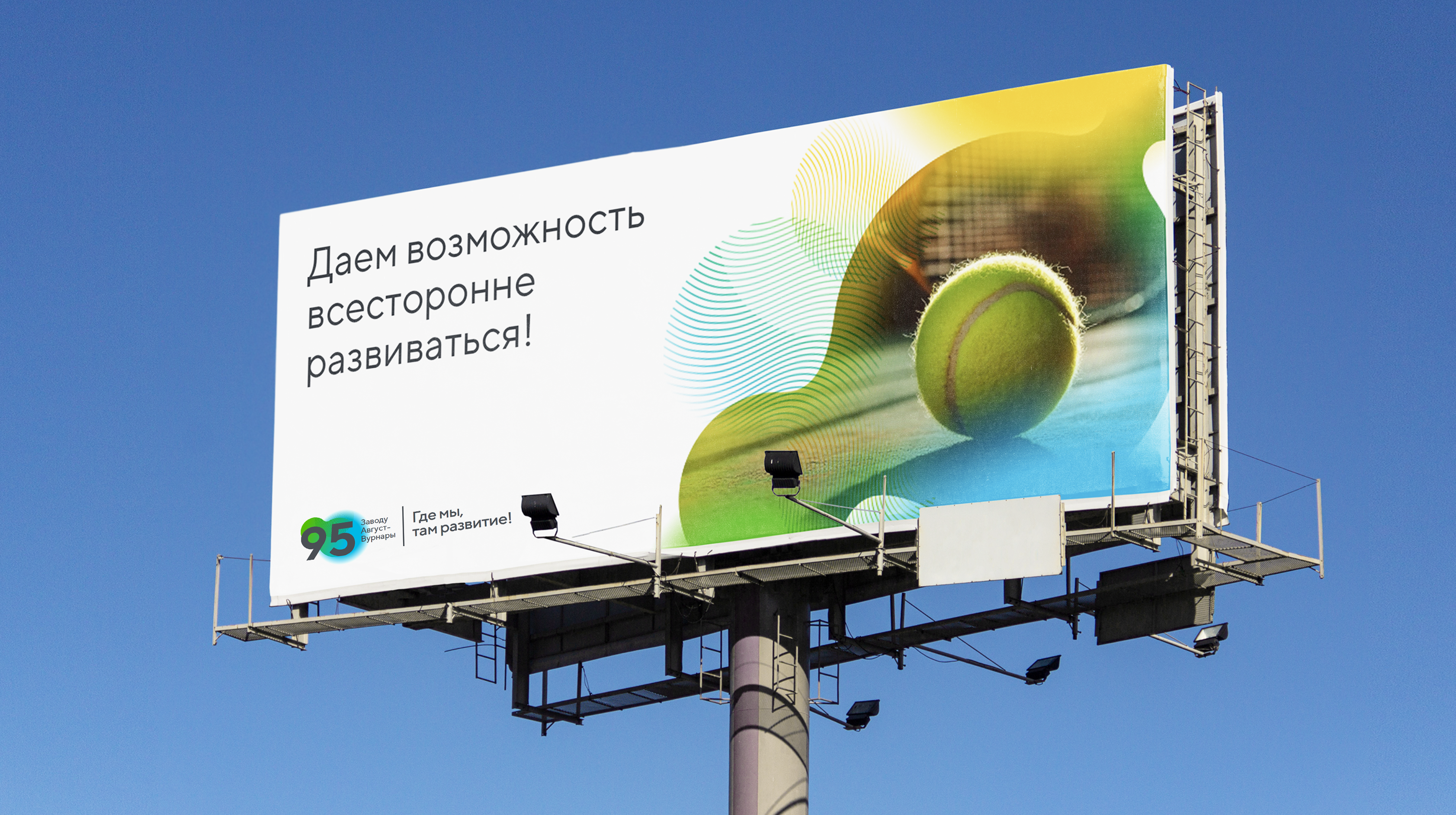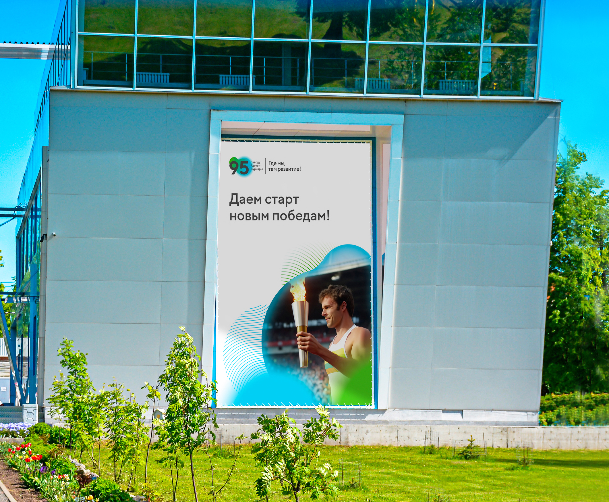 Мы сделали динамичный фирменный стиль – с вариативностью изображений юбилейного знака «95 лет» и стилеобразующими элементами, которые отражают инновационность и технологичность производства.