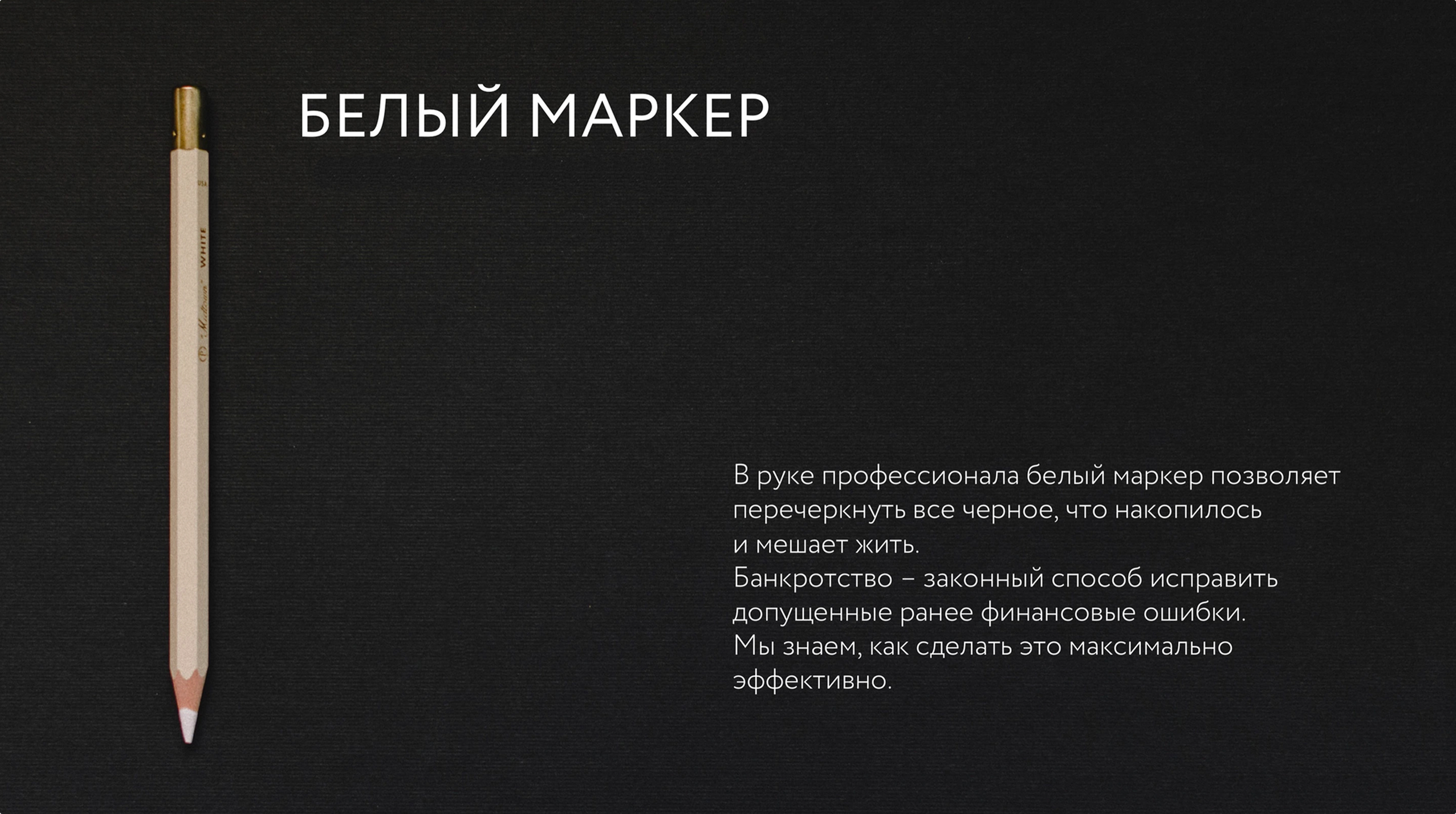 В ситуации, когда на рынке услуга «банкротство» стандартно подается как «быстрое и законное избавление от долгов», нам было важно диффренцироваться от конкурентов и донести главные ценности компании: внимательное отношение к клиентам, человечность, высокий уровень профессиональной консультации.